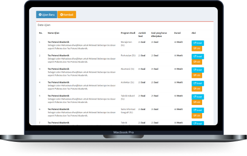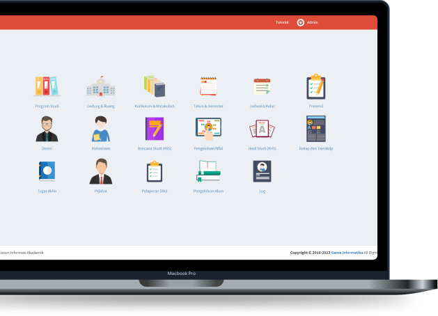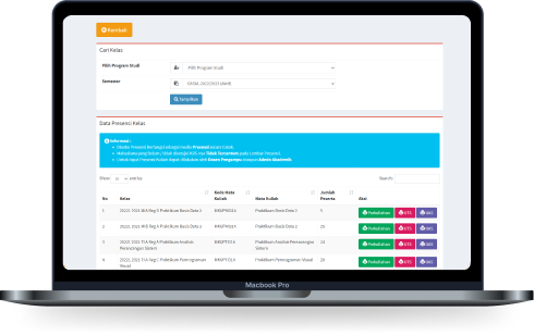 - Managemen perkuliahan seperti ruangan, jadwal presensi, penilaian, KRS, KHS, bimbingan TA/KP